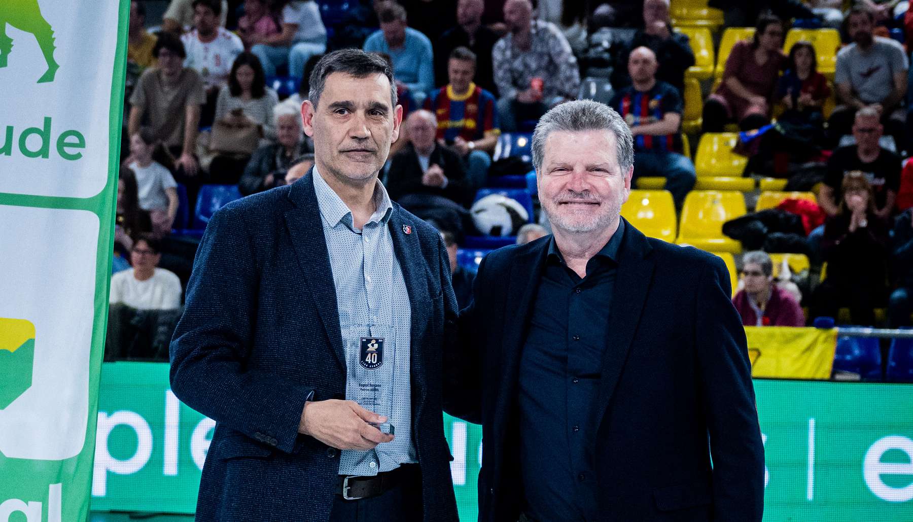 La Liga Plenitude vivió un momento cargado de simbolismo el pasado viernes en el Palau Blaugrana, donde Eugeni Serrano fue distinguido con el galardón ‘Padrino ASOBAL’, un reconocimiento que rinde homenaje a los jugadores que han sido pilares de la historia y el legado de la ‘Escuela de Talento’. La entrega del premio se enmarcó en los actos del 40 aniversario de la competición y en la previa del Gran Derbi entre el Barça y el Fraikin BM Granollers, dos clubes que marcaron la carrera del homenajeado.
